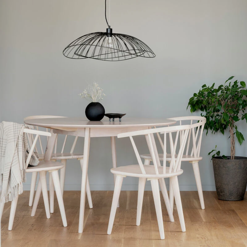 Laadukas 4-hengen ruokailuryhmä sopii hyvin pieneenkin tilaan. Yumi pöydän kansi on saarni viilua ja jalat kumipuuta. Upeat Carmen pinnatuolit antavat retrohenkeä sisustukseen. Tuolien materiaali on kumipuu. Ajaton ruokailuryhmä sopii moderniinkin sisustuukseen.