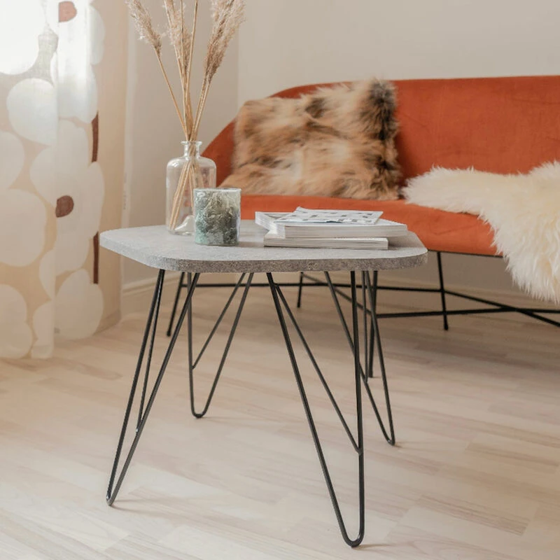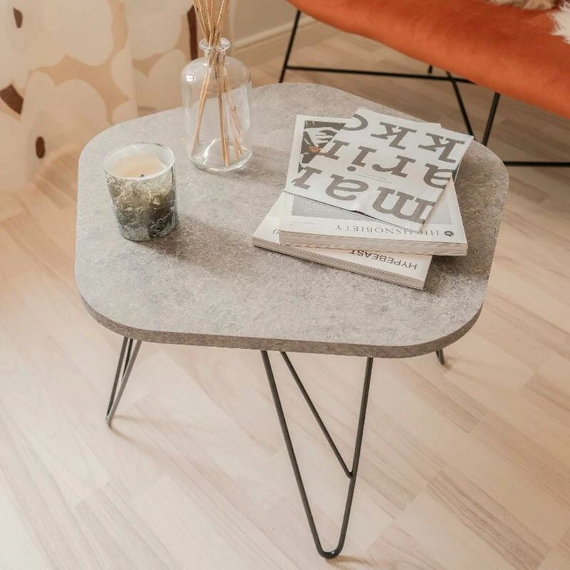 Kiwi sohvapöytä on tyylikäs vaihtoehto kodin eri tiloihin. Pöydän kansi on kestävää Nonstick-kovapinnoitettua mdf-levyä, joka on helppo pitää puhtaana kostealla liinalla pyyhkien. Jalat ovat mustaksi maalattua metallia.