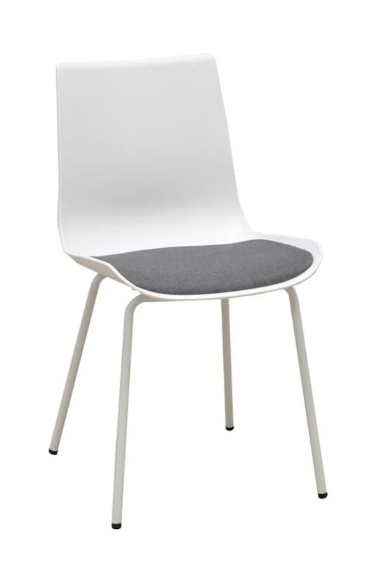 Modernissa Torino tuolissa on sirot, metalliset jalat ja kauniisti muotoiltu muovinen istuinosa. Istuinosa on pehmustettu ja verhoiltu kestävällä harmaalla polyesterikankaalla. Tuoli toimitetaan jalat irrallaan, mukana kasausohje.