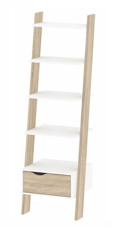 Monikäyttöinen ja kaunis seinään nojaava Delta hylly, jonne voit asetella kotisi kirjat ja muut koriste-esineet. Hyllyssä on neljä avohyllyä sekä laatikko, joiden materiaali on valkoista kalustelevyä. Jalat sekä laatikon etylevy kauniissa tammen sävyssä. Hylly on suositeltavaa kiinnittää seinään.