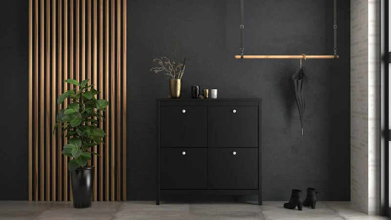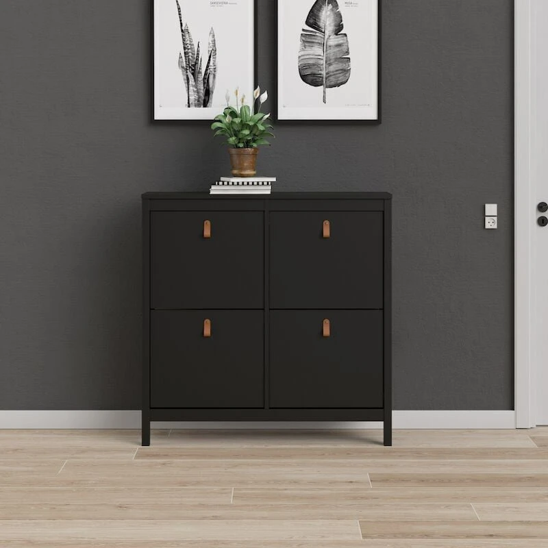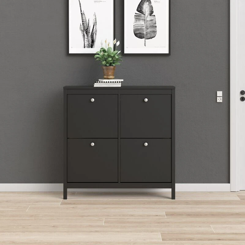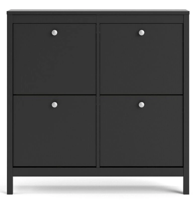 Madrid kenkäkaappi on upean tyylikäs eteiseen tarkoitettu kenkäkaappi. Kenkäkaappia voi käyttää myös vaatehuoneessa tai missä tahansa kodin kuivissa tiloissa. Mukana tulee kahdet erilaiset vetimet. Ensimmäisen kenkärivin syvyys on 18,5 cm ja toisen rivin syvyys 12,3 cm. Kenkäkaappiin sopii kaikki kengänkoot kokoon 45 saakka ja kokonaisuudessaan kaappiin mahtuu 16 kenkäparia.
