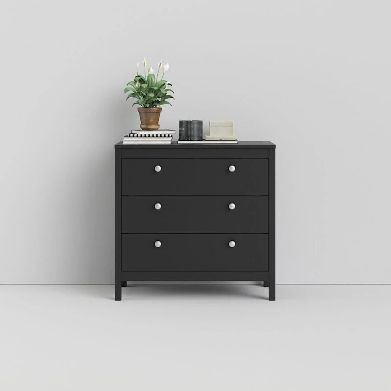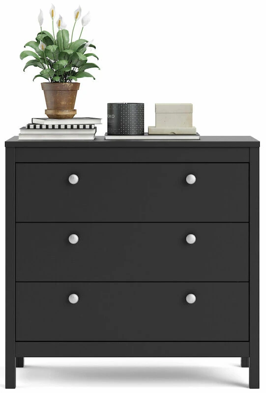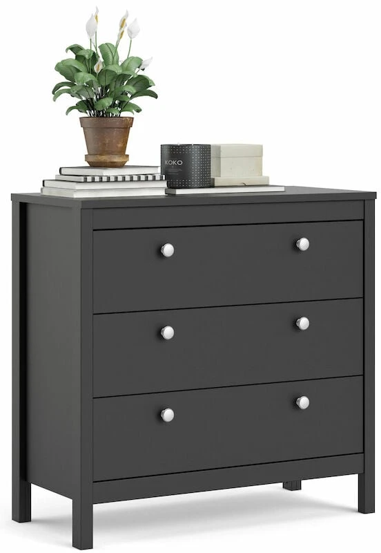 Madrid lipastossa on 3 laatikkoa, joissa on kauniit vaihdettavat vetimet. Vetolaatikko tulee 21,7 cm ulos rungosta. Paketin mukana tulee yksinkertaiset kasausohjeet, joilla saat lipaston helposti käyttöösi. Osta lisäksi tuotteista löydät lisää samaan sarjaan kuuluvia tuotteita.