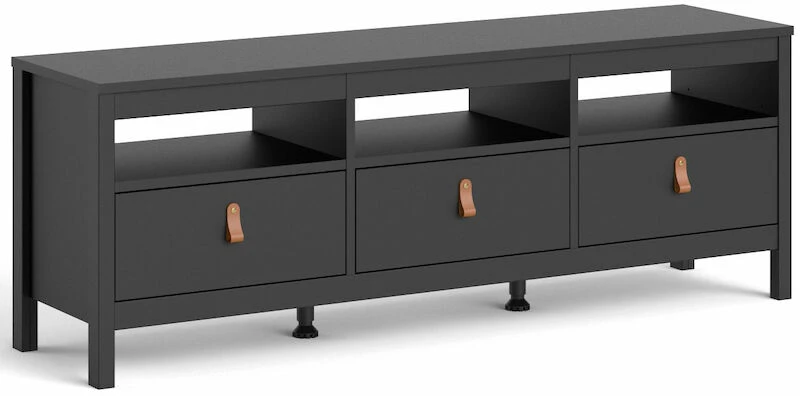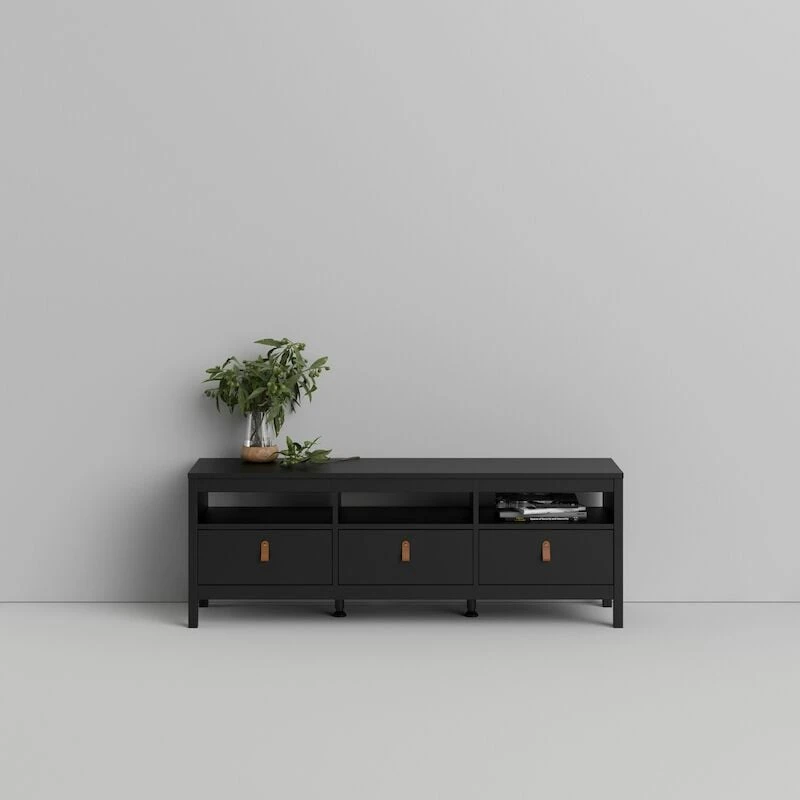 Madrid tv-tasossa on runsaasti säilytystilaa ja kantavuutta. Saat välitilaan kauniisti koriste-esineitä, lehtiä tai kirjoja ja tarvittaessa mitä tahansa piiloon säilöön. Mukana tulee kahdet erilaiset vetimet, joista voit valita tyyliin sopivat ja muuttaa mieltäkin jälkikäteen. Vetolaatikko tulee 21,7 cm ulospäin. Hyllyjen mitat on L47xS37,3 cm.