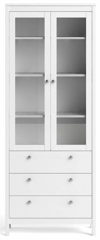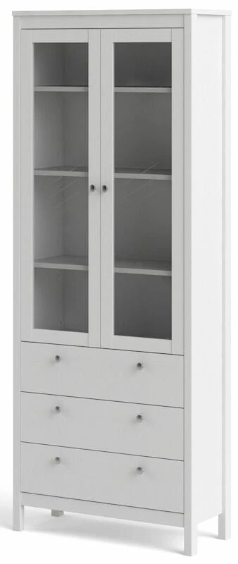 Madrid vitriinin avulla saat rakkaita valokuvia, kirjoja ja kauniita sisustusesineitä tyylikkäästi ja hallitusti esille. Mukana tulee kahdet erilaiset vetimet, joten voit valita sisustukseen sopivat perinteisten nuppien ja modernien nahkaisten vetimien välillä ja tarvittaessa muuttaa myöhemmin mieltä!