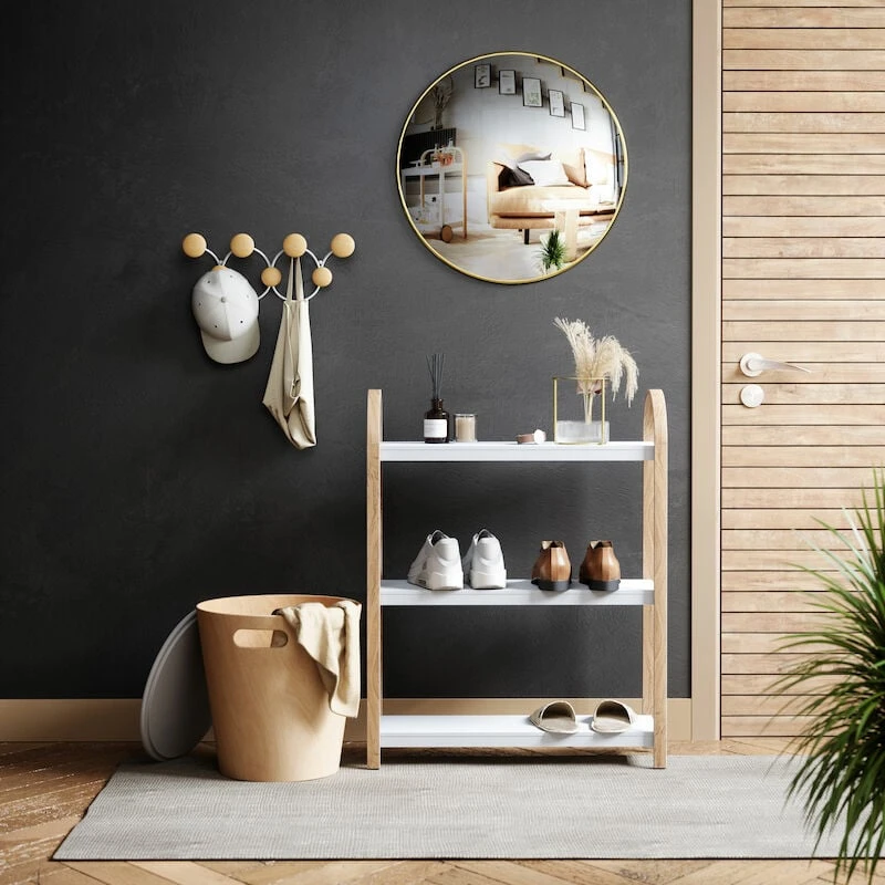 Umbra Bellwood 3-tasoinen seisova hylly on sekä sisustuksellisesti kaunis, mutta myös monikäyttöinen. Hyllyä voi käyttää useissa eri huoneissa ja sitä on helppo kahvoista myös siirtää haluttuun tilaan. Yksi avohylly kestää painoa 13 kg ja voit laittaa esille kauniisti kirjoja, aikakauslehtiä tai koriste-esineitä. Oiva apua esim. lastenhuoneen tai eteisen säilytysratkaisuihin.