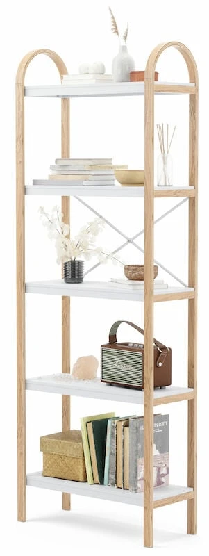 Umbra Bellwood 5-tasoista seisovaa hyllyä voi käyttää monipuolisesti kirjahyllynä ja koriste-esineiden esillepanoon. Avohylly on helppo kasata mukana tulevilla ohjeilla. Bellwoodissa on aitoja puisia yksityiskohtia ja kahvat, jotka tekevät sen liikuttamisesta helppoa. Jokainen hylly kestää 13 kg painoa.