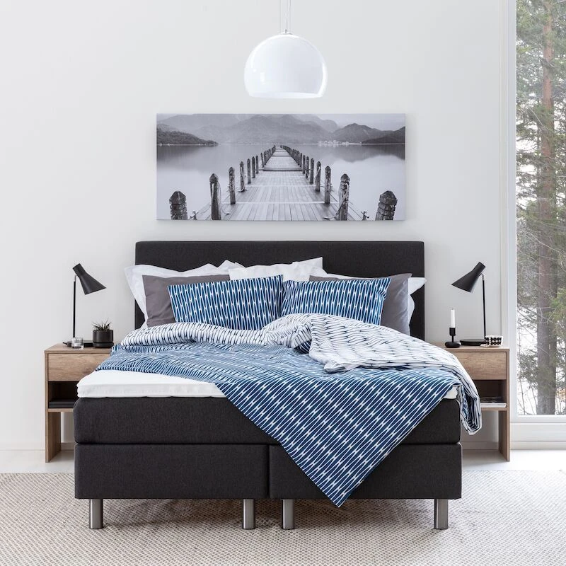 Unia 100 jenkkisänkypaketti 160 on hyvä vaihtoehto sinulle, joka haet tukevaa ja pitkäikäistä sänkyä. Unia 100 tuoteperheen jenkkisängyt valmistetaan SUOMESSA tukevaan massiivipuurunkoon ja ergonomisella ja yksilöllisesti myötäilevällä pussijousituksella. Unia 100 jenkkisängyt on verhoiltu kestävällä ja tyylikkäällä grafiitin värisellä huonekalukankaalla. Kauniin ja ajattoman ulkonäön kruunaa tukevat metalliset jalat. Unia 100 jenkkisänkypakettiin kuuluu: Kiinteät solid base alarungot sälepohjilla, pussijousitettu välipatja, Unia 100 tai 300 profiloitu vaahtomuovi petauspatja ja altakierrettävät metallijalat. Huom. Kuvissa näkyvä sängynpääty ei kuulu jenkkisänkypakettiin. Tuotteella on 15 vuoden katkeamattomuustakuu jousistolle ja rungolle.