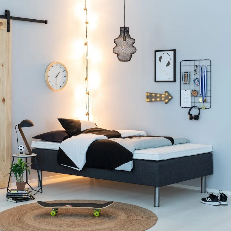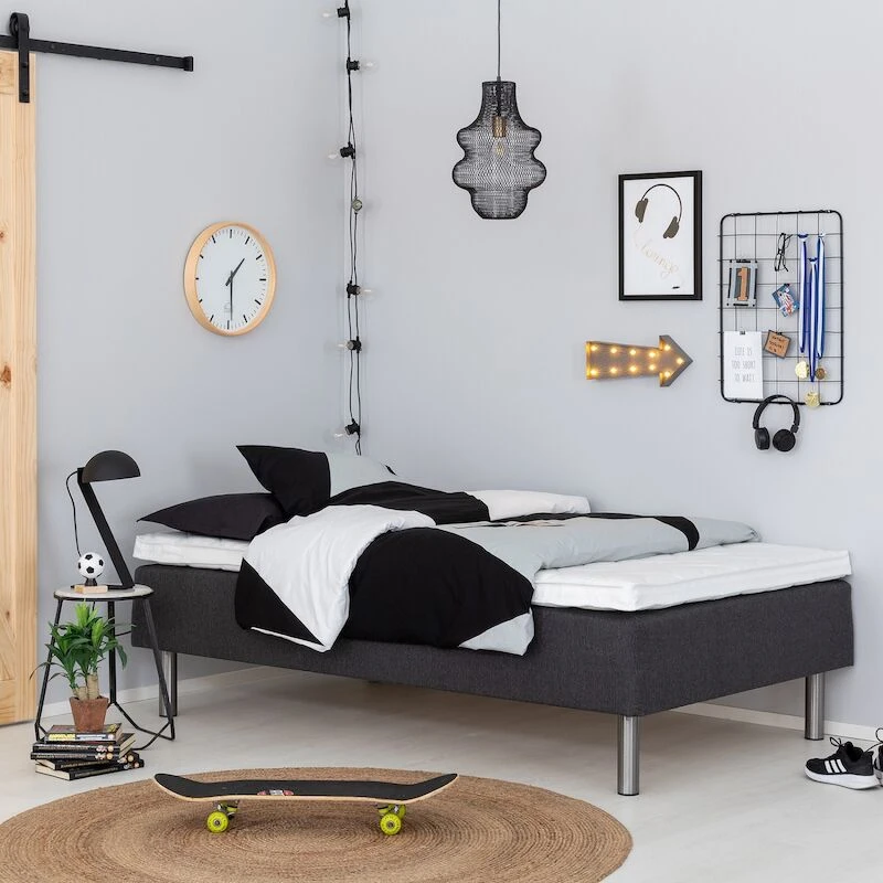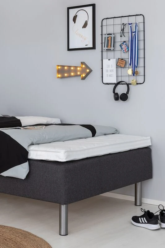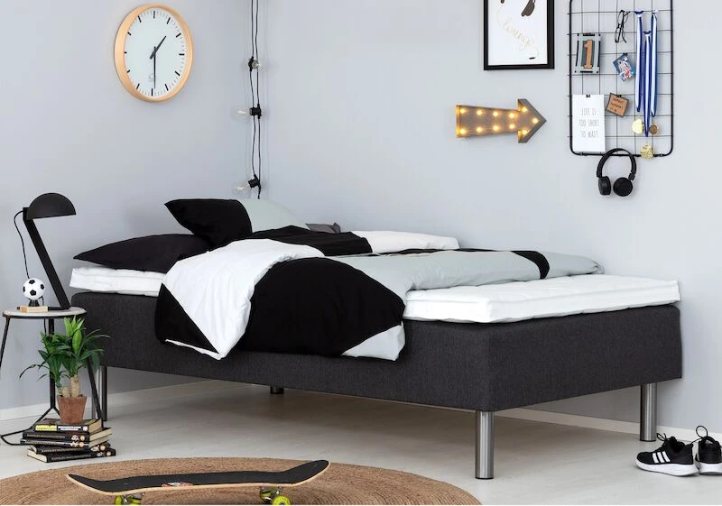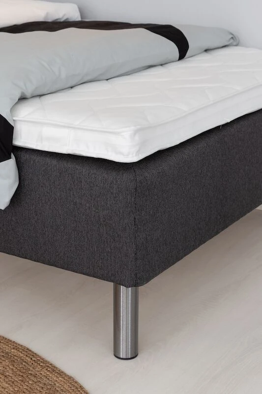 Unia 100 runkopatjapaketti on hyvä vaihtoehto sinulle, joka haet tukevaa ja pitkäikäistä sänkyä. Unia 100 tuoteperheen runkopatjat valmistetaan SUOMESSA tukevaan massiivipuurunkoon ja ergonomisella ja yksilöllisesti myötäilevällä pussijousituksella.Unia 100 runkopatjoissa on vyöhykkeetön pocket-jousisto 1,9 mm lankavahvuudella. Runkopatjat on verhoiltu kestävällä ja tyylikkäällä grafiitin värisellä huonekalukankaalla. Kauniin ja ajattoman ulkonäön kruunaa tukevat metalliset jalat. Unia 100 runkopatjapakettiin kuuluu: pussijousitettu runkopatja, Unia 100 profiloitu vaahtomuovi petauspatja valitsemallasi paksuudella; joko 5 cm tai 8 cm paksuna ja altakierrettävät metallijalat M8 kierteellä. Tuotteella on 15 vuoden katkeamattomuustakuu jousistolle ja rungolle. Sängyssä ei ole keskitukijalkaa, eikä se tukevan rakenteen vuoksi sellaista tarvitse.