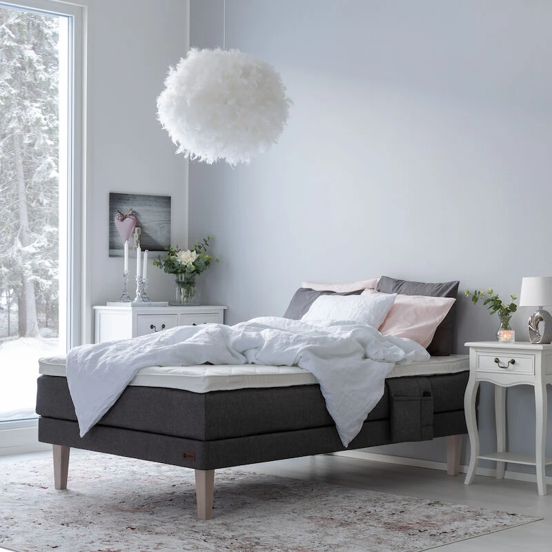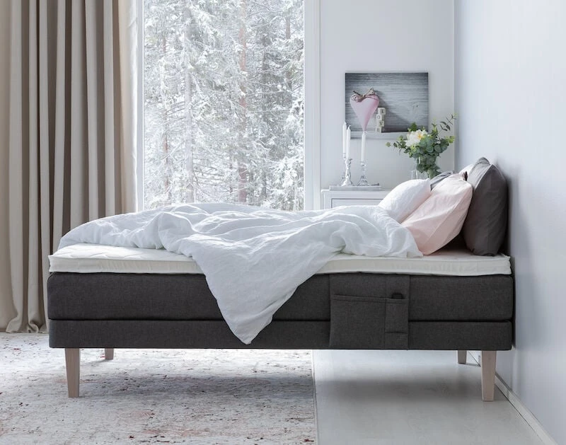 Unia 300 moottorisänkypaketti on hyvä ja laadukas sänky. Unia 300 moottorisängyt valmistetaan SUOMESSA tukevaan massiivipuurunkoon ja korkealla pussijousituksella. Unia 300 moottorisängyt on verhoiltu kestävällä ja tyylikkäällä tummanharmaalla huonekalukankaalla. Makuupinnalla on hyvin joustava valkoinen joustokangas. Sänky säädettävissä langattoman kaukosäätimen avulla, molemmat päädyt säädettävissä. Sängyn alla on yövalo, jonka saa kaukosäätimestä päälle ja pois päältä.