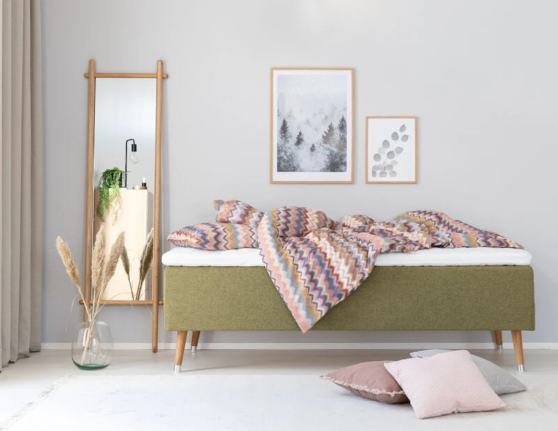Sängyssä on tyylikkäät tammen väriset viistojalat, joissa on yksityiskohtana metallirengas. Unia 900 runkopatjapakettiin kuuluu: Runkopatja 5-vyöhykkeisellä pussijousituksella, valitsemasi petauspatja ja altakierrettävät jalat. Tuotteella on 20 VUODEN katkeamattomuustakuu jousistolle ja rungolle. Tuotteella on Allergia-, iho- ja astmaliiton tunnus.