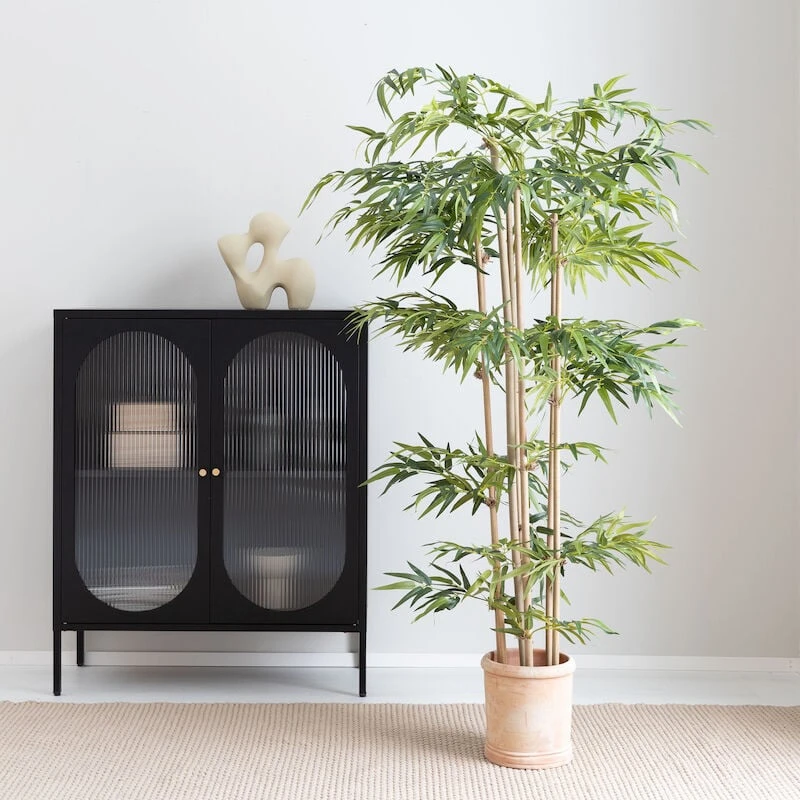 Tyylikäs ja moderni Alvar matala metallivitriini. Vitriinin koko 90x35x110 cm. Vitriinissä kauniit huurre aaltolasit. Vitriinin sisälläsiirrettävä välihylly. Alvar vitriinissä on säätöjalat ja kaunis kullanvärinen nuppivedin.
