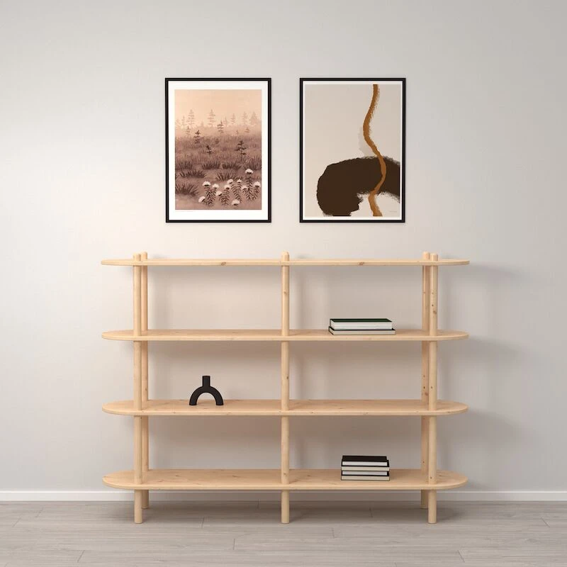 Hyllyt ovat pyöristetyt, mikä tuo pehmeyttä ja harmoniaa sisustukseen. Avohyllykkö sopii upeasti lasten huoneeseen säilytyspaikaksi leluille tai minne tahansa muualle kodin tiloihin. Modulaarinen järjestelmä mahdollistaa erilaisten kokonaisuuksien kokoamisen esimerkiksi kirjoille, leluille tai säilytyslaatikoille, jos kaikkien tavaroiden ei haluta hyllyltä erottuvan. Ostamalla lisäosia, voit halutessasi muokata tai laajentaa valmista hyllyratkaisua. Hyllyn kasaaminen on helppoa ja vaivatonta, sillä se ei vaadi erikoistyökaluja. Kasaaminen onnistuu pyörittämällä jalat ja välipuut kiinni toisiinsa.
