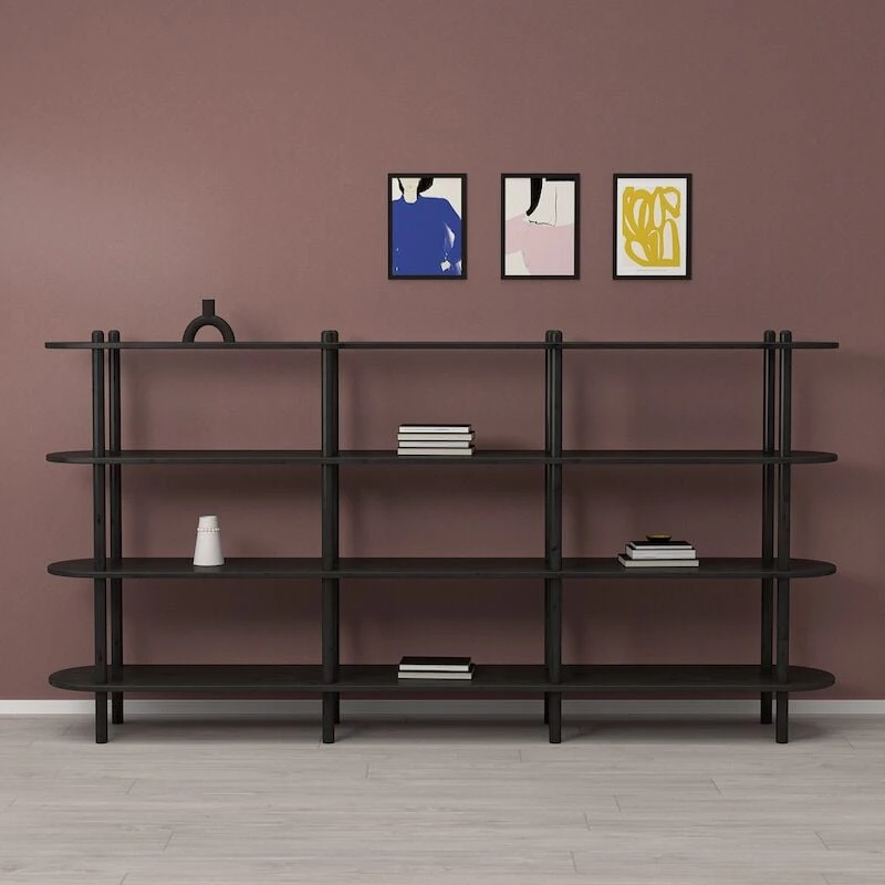 Hyllyt ovat pyöristetyt, mikä tuo pehmeyttä ja harmoniaa sisustukseen. Modulaarinen järjestelmä mahdollistaa erilaisten kokonaisuuksien kokoamisen esimerkiksi kirjoille, koriste-esineille tai säilytyslaatikoille. Hyllykkö on helppo ja nopea kasata, erillisiä työkaluja ei tarvita.