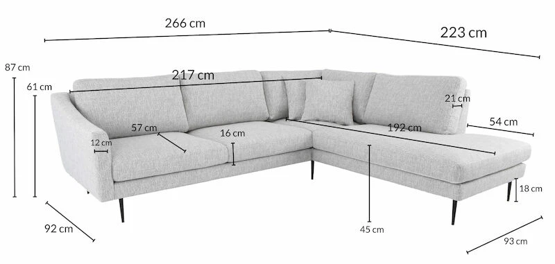 Veke Candy Avokulmasohva Vasen Harmaa Torita 309842, Mustat Jalat