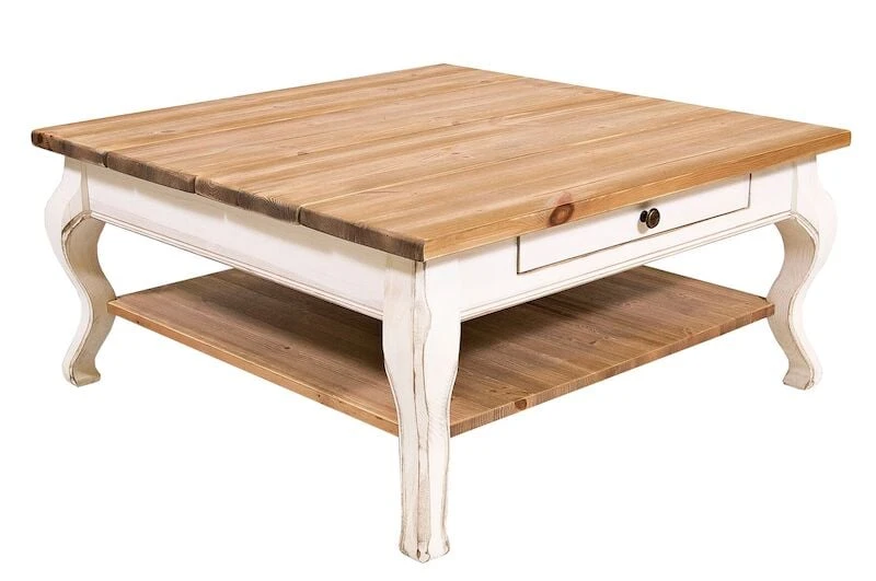 Country sohvapöytä on maalaisromanttisen henkinen ja tuo lämmön tuntua kotiisi. Pöytä on lakattua mäntyä. Tähän on mukava pitkän päivän jälkeen nostaa jalat, laittaa kynttilät palamaan ja juoda kupillinen teetä. Sohvapöydän laatikko aukeaa molemmille puolille. 70×70 cm kokoisessa pöydässä on yksi laatikko ja 92×92 cm kokoisessa 2 laatikkoa.