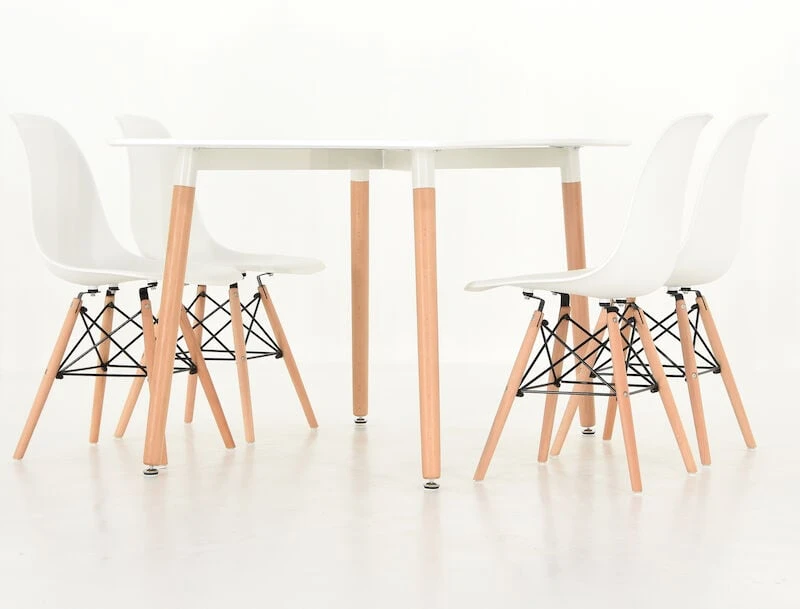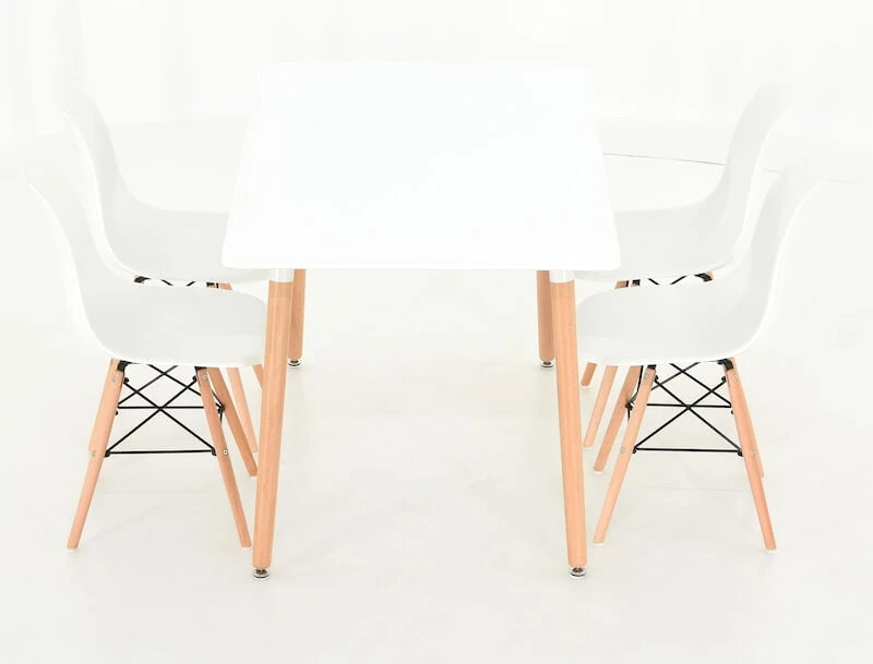 Fox-Elea on upea 4-hengen ruokailuryhmä, jonka ääressä on mukava nauttia arkisista ja juhlallisista hetkistä. Tuolien muotoilu yhdistettynä kauniiseen pöytään ovat täydellinen kokonaisuus. Elea tuoli on valmistettu pyökistä, metallista ja muovista. Fox pöydän kansi on MDFää ja jalat niin ikään pyökkiä. Elea on mukavan kevyt, joka helpottaa sen siirtämistä paikasta toiseen. Tuolissa on kaunis ja näyttävä metallikehikko. Fox on maalattu valkoiseksi ja se sopii hienosti pyökkisten jalkojen kanssa yhteen. Pöytä toimitetaan jalat irrallaan yhdessä pahvilaatikossa ja tuoli tulee osissa.