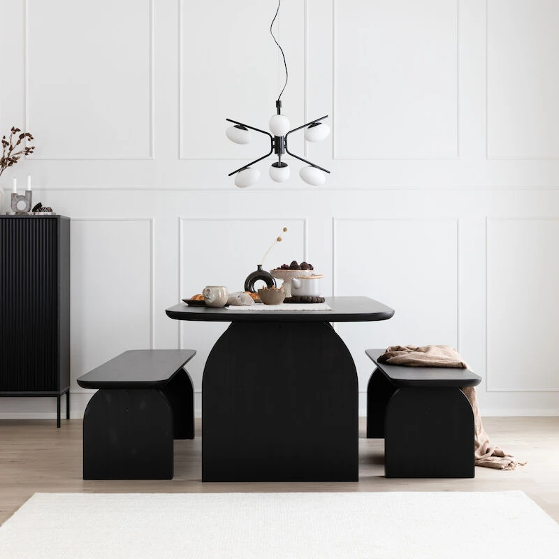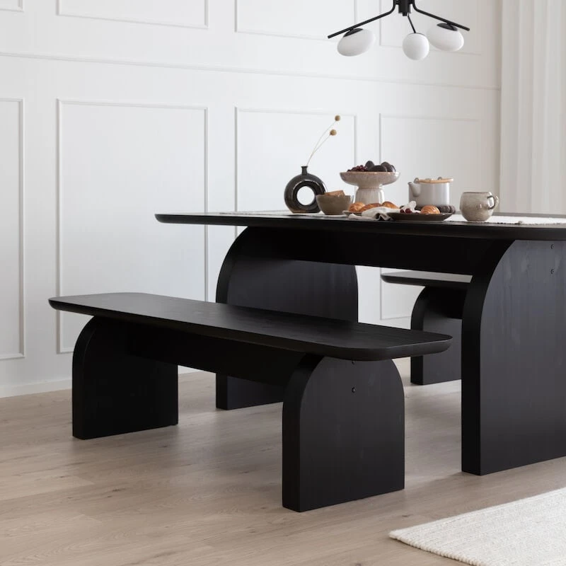 Upeassa 6-hengen ruokailuryhmässä minimalismi ja pyöreät, orgaaniset muodot tuovat perinteisen pirttikalusteen tähän päivään. Ruokailuryhmä on massiivinen, mutta kuitenkin elegantti ja pelkistetyn moderni. Pehmeät muodot sekä pöydän jykevyys luovat kauniin kontrastin. Ruokailuryhmä valmistetaan laadukkaasta pohjoissuomalaisesta, tiukkasyisestä männystä. Raaka-aine ja tehdas sijaitsevat lähellä toisiaan, Ranualla, jolloin tuotteen matka metsästä tuotantoon ja sinulle on mahdollisimman lyhyt.
