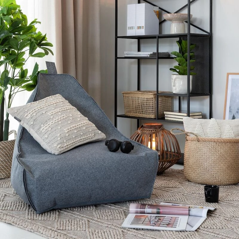 Sisustuksellinen ja helposti liikuteltava säkkituoli sopii niin olohuoneeseen, pelihuoneeseen kuin katetulle terassillekkin. Säkkituoli on ryhdikkään näköinen ja toimii hyvin lisäistuimena. Verhoiltu huopakankaalla. Säkkituolissa on kahva helpottamassa liikuttamista. Sisuksena pieniä styrox palloja. Soveltuu käytettäväksi niin sisätiloissa kuin katetuissa ulkotiloissa kuten terassilla tai lasitetulla parvekkeella.