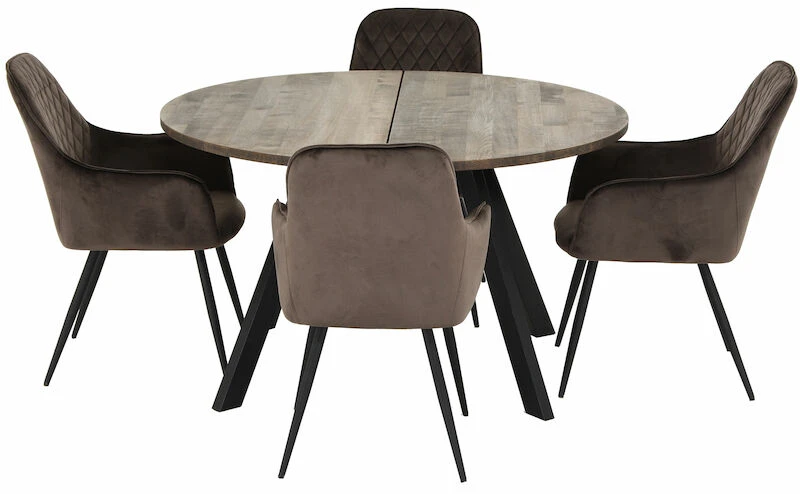 Kaiku-Harbo 4-hengen pyöreä ruokailuryhmä on tyylikäs ja laadukas ryhmä. Ruokailuryhmään kuuluva Kaiku ruokapöytä on todella laadukas koivusta ja massiivitammesta valmistettu pyöreä pöytä. Sen muotoilu on moderni ja tyylikäs ja sopii hyvin myös pieniin koteihin. Tuolit viimeistelevät kokonaisuuden hienolla samettiverhoilullaan ja tyylikkäillä mustaksi maalatuilla metallijaloilla. Tuolin selkänojassa on kauniit tikkaukset. Yksi tuoli painaa 6 kg ja pöytä 44 kg. Pöytä on valmistettu Virossa. Tämä ruokapöytä on valmistettu oikeasta puusta. Luonnonmateriaalina puussa voi olla pieniä väri- ja kuvioeroja. Puu elää ilman kosteuden mukaan, joten puupinta voi elää ja siihen voi tulla pieniä rakoja ja jälkiä johtuen elämisestä. Puusta valmistetun pöydän säännöllinen hoito pidentää pöydän elinikää.