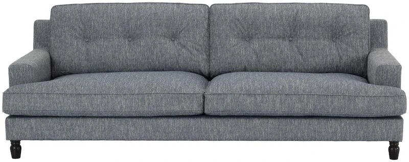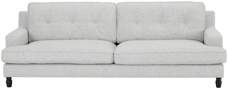 Klassisen kaunis Humphrey 3-istuttava sohva. Kangasverhoiltu, värivaihtoehtoina vaaleanharmaa, beige ja vaaleansininen. Sohvassa on kauniit, pehmeät muodot, koristeelliset etujalat ja selkänojatyynyissä painonapit. Tyylikäs sohva, jossa on myös hyvä istua. Selkätyynyn paksuus n. 17 cm, istuintyynyn n. 20 cm. Istuimen ja selkätyynyjen päälliset ovat irroitettavissa ja pestävissä. Varovainen pesu 30 asteessa/ kuivapesu. Kankaan martindale on 25 000. Valonkesto 5. Pilling-luku 4/5.