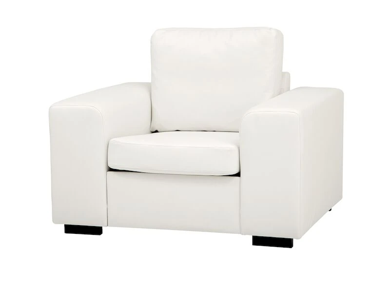 Suoralinjainen Bonded-nahkaverhoiltu Joel nojatuoli. Puolipehmeä istuintuntuma. Normaaliin istumiseen parhaiten soveltuva istuinmitat. Rungon kantavat osat valmistettu puusta ja vanerista. Istuintyynyjen sisuksena kimmoisa ja kestävä HR-kylmävaahto. Sohvassa tyylikkäät puiset jalat.