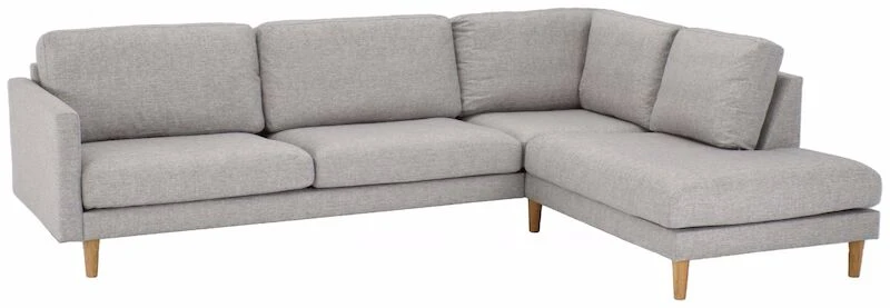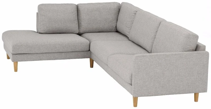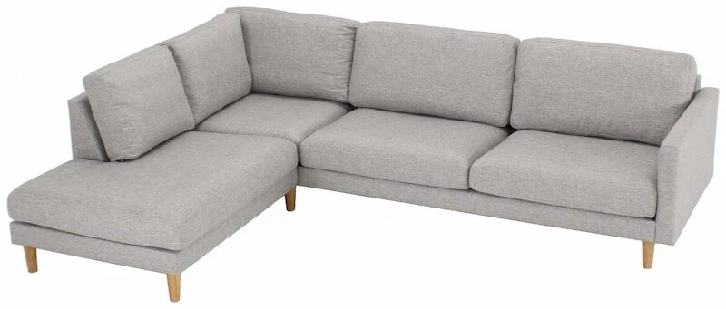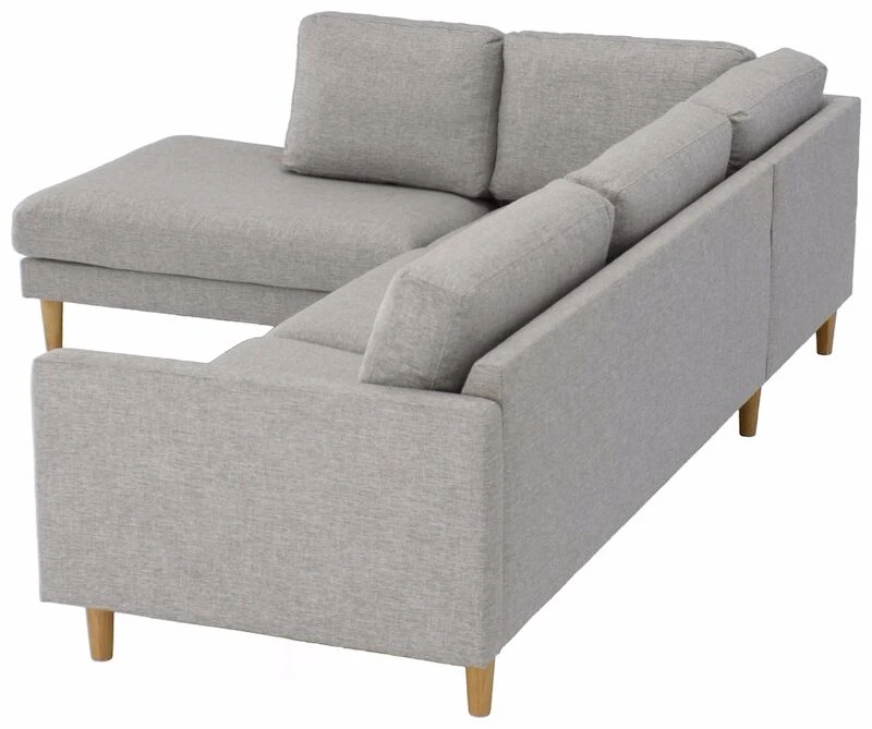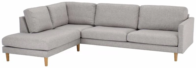 Moderni ja laadukas avokulmasohva, jossa on tilaa koko perheelle! Sohvassa on laadukas kangasverhoilu. Sohvan jalkoina on korkeat, tammen sävyiset puujalat, joiden ansiosta siivous on helppoa sohvan alta. Sohva sopii hyvin monenlaiseen sisustukseen. Selkätyynyjen päälliset on irroitettavissa. Kätisyys valitaan sohvaa tilatessa. Istuintyynyn vahvuus on 14 cm ja selkätyynyn vahvuus 19 cm. Istuintyynyn sisuksena on napakka vaahtomuovitäyte. Istuintyynyissä on 1-puoleinen verhoilu, joten tyynyn nurja puoli on verhoiltu apukankaalla. Selkätyynyissä on sisuksena vaahtomuovirouhe ja vanutäyte. Selkätyynyssä 2-puoleinen verhoilu eli tyynyn molemmat puolet verhoiltu samalla kankaalla.