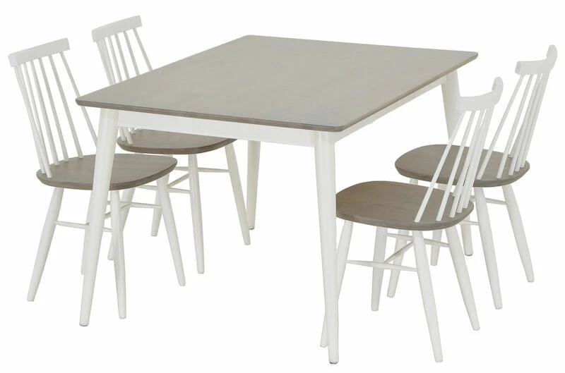 Klassisen tyylikäs Kaarna ruokailuryhmä neljälle hengelle. Tämä ruokailuryhmä on tukeva ja se tuo sisustukseen tyyliä ja retrohenkisyyttä. Pinnatuoleissa on kapenevat ja sirot jalat, jotka antavat miellyttävän kevyen vaikutelman. Ruokapöydässä kauniit viistojalat. Ruokailuryhmä valmistetaan kestävästä koivusta, poikkeuksena maalatut kannet ja valkoiset jalat valmistetaan MDF-levystä. Pintakäsitelty petsilakalla tai maalilla väristä riippuen. Pöytä toimitetaan jalat irrallaan pahviin pakattuna. Tuolit toimitetaan täysin valmiiksi kasattuina pahviin pakattuina. Tuolin mitat: Leveys 44 cm, syvyys 50 cm ja korkeus 83 cm. Pöydän korkeus 74 cm.