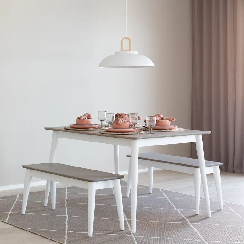 Kaunis ja tukeva Kaarna ruokapöytä viistojaloilla. Kokonaan valkoinen pöytä, kansi ja jalat ovat mdf:ää ja sarjapuu koivuvaneria. Pöytä on pintakäsitelty valkoisella maalilla. Harmaan pöydän kansi on petsi lakattua koivua ja jalat mdf:ää. Koivu/musta pöytä on kokonaan koivua ja pöydässä mustat kauniiksi sorvatut jalat. Pöydän pinta on käsitelty petsilakalla. Pöytä toimitetaan jalat irrallaan pahviin pakattuna.