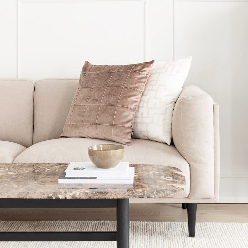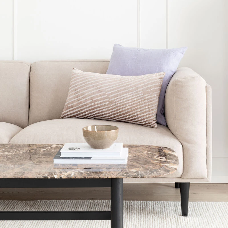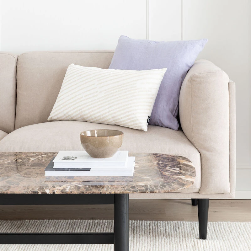 Lampi 2,5-istuttavassa sohvassa on käytetty huippulaadukkaita ja miellyttävän tuntuisia pehmustemateriaaleja, jotka tekevät sohvasta todella miellyttävän istua. Istuintyynyjen pinnassa pehmeyttä tuo untuvakerros. Sohva on ulkomuodoltaan kevyt ja moderni, joten se sopii täydellisesti myös pienempäänkin tilaan. Kaunis ja laadukas hiekan värinen kangasverhoilu on miellyttävä ja ajaton. Valittavissa on kolme eri jalkavaihtoehtoa, joilla saat personoitua sohvan juuri sinun tyylisi sopivaksi.