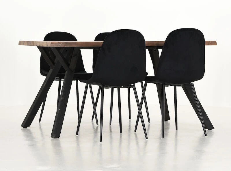 Lana-Furia 4-hengen ruokailuryhmä on tyylikäs kokonaisuus, jossa yhdistyy puu ja ihanan pehmeä samettikangas!