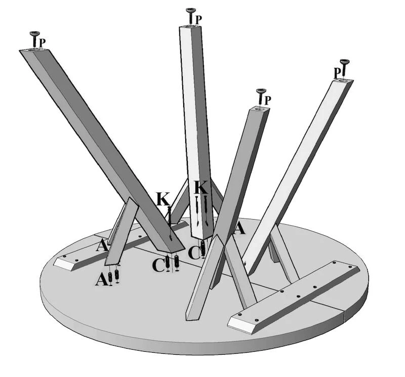 Kansilankkujen alapuolella valmiit ruuvinreiät jalkojen kiinnitystä varten, jotka ovat yhteensopivat Lana pyöreän pöydän jalkojen kanssa. Lisäksi reunoilla kiinnitysreiät laudoille, joilla kansilankut saa yhdistettyä tukevasti toisiinsa.