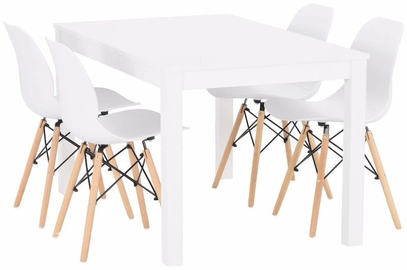 Moderni ja ajaton Rana-Moona ruokailuryhmä neljälle hengelle. Moona pöytä on valmistettu tukevasta koivusta, poikkeuksena kokonaan valkoinen, jonka jalat ja kansi on MDF:ää ja sarjapuu koivuvaneria. Pintakäsitelty petsilakalla tai valkoisella maalilla riippuen väristä. Rana tuoli on tukeva, mutta mukavan kevyt liikutella ja siinä on hyvä istua. Istuin- ja selkäosa on laadukasta ja joustavaa ABS-muovia. Tuolin jalat käsittelemätöntä, luonnonväristä pyökkiä.