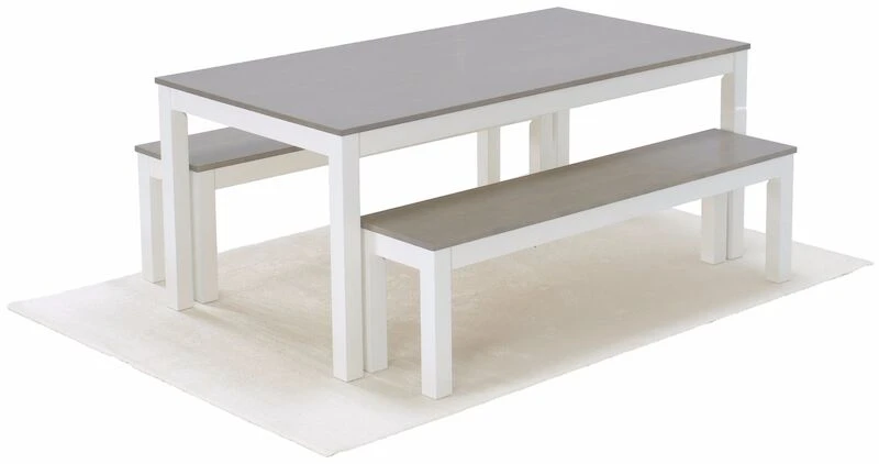 Tukeva Moona 6-hengen ruokailuryhmä penkeillä. Pöydän kansi valmistettu tukevasta koivusta, jalat MDF:ää ja sarjapuu koivuvaneria. Poikkeuksena kokonaan valkoinen, jonka jalat ja kansi on MDF:ää ja sarjapuu koivuvaneria. Myös valkoinen/harmaa sävyn penkit valmistettu MDF-levystä. Musta väri sarjapuu/sokkelit ovat koivuvaneria ja jalat MDF:ää. Nyt saatavissa upeilla ja trendikkäillä väreillä. PENKIN MITAT: pituus 152 cm, istuinkorkeus 45 cm, istuinsyvyys 40 cm.