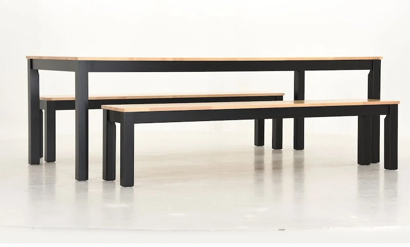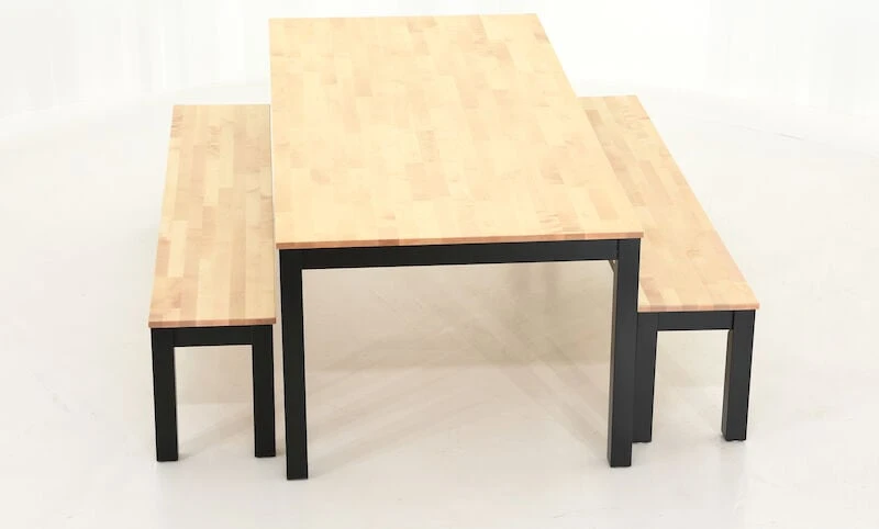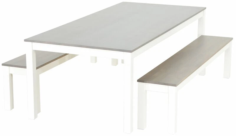 Moona on tukeva ja ajaton ruokailuryhmä kahdeksalle hengelle. Penkit ovat tilava, mutta samalla tilaa säästävä ratkaisu, kun haluat reilusti istumatilaa pöydän ympärille. Jämäkkä penkki kestää käyttöä hyvin ja jaloille on vahvat kiinnitykset. Pöydän ja penkkien kansi on lakattua koivua, jalat mdf-levyä ja sarjapuut koivuvaneria. Poikkeuksena kokonaan valkoinen ruokailuryhmä, jonka kansi on maalattua mdf:ää.