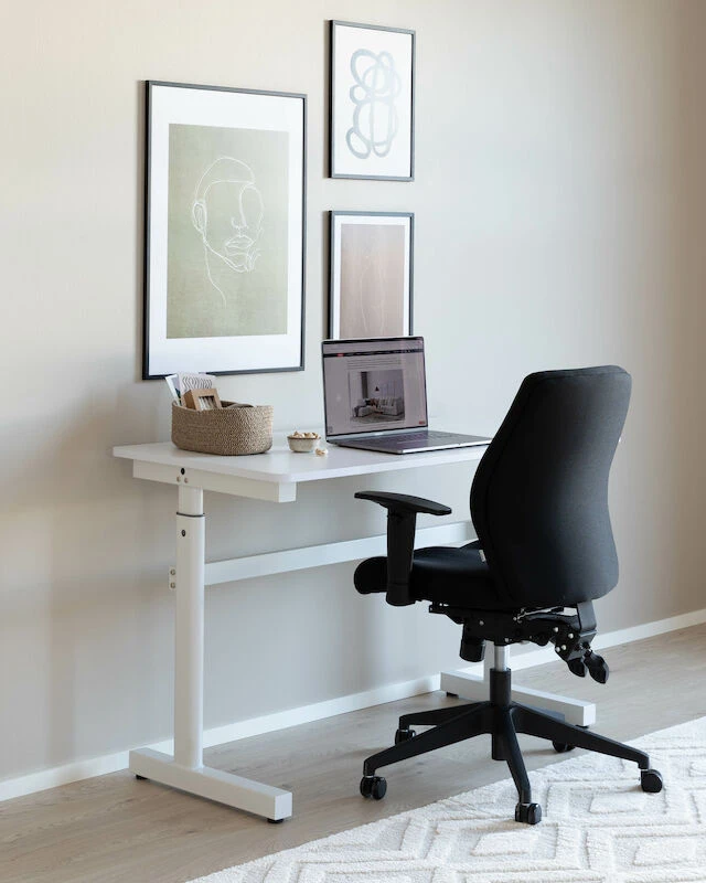 Helppokäyttöinen Multi säätöpöytä käsikäyttöisellä veivillä. Veivin voi asentaa pöydän vasemmalle tai oikealle puolelle. Veivi on irroitettava. Pöydän jalat ovat pulverimaalattua metallia. Kansi on valmistettu 18 mm paksusta melamiinipinnotteisesta mdf-levystä. Pöydän korkeus on säädettävissä 71-117 cm välille. Tuote toimitetaan yhdessä paketissa.