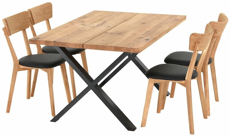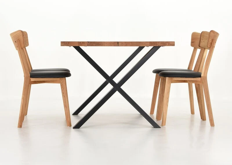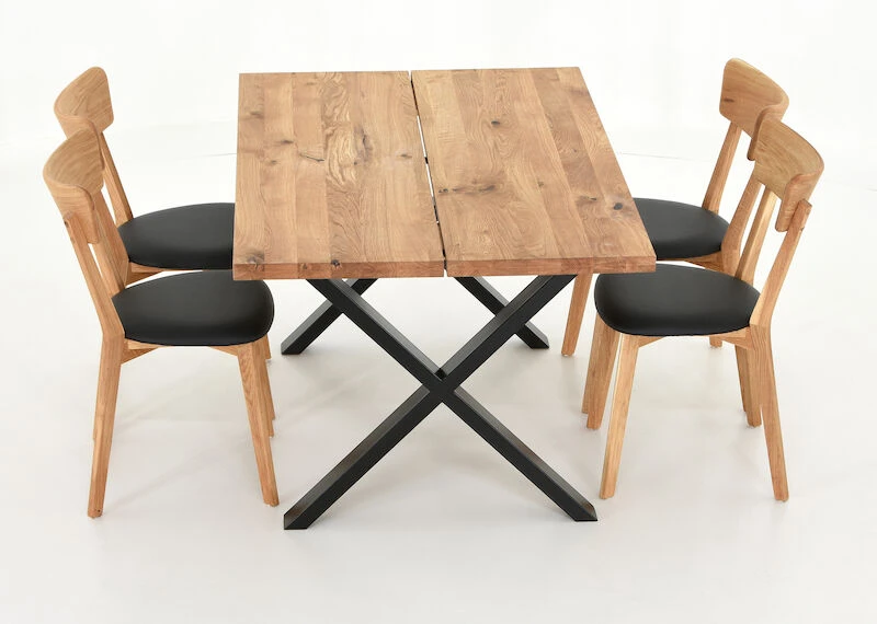Orvo-Koto on todella tyylikäs ruokailuryhmä, jossa kodikkuutta ja lämpöä henkii upea tammesta valmistettu pöydän kansi. Tukevan pöydän kansi on valmistettu kahdesta leveästä lankusta ja pöydän x-mallinen jalka on maalattua metallia. Pöydän pinta on käsitelty öljyämällä. Pinta on suositeltavaa öljytä säännöllisesti, jotta se pysyy kauniina. Pöytää pystyy jatkamaan Orvo ruokapöydille tarkoitetulla jatkopalalla. Toimitetaan jalat irrallaan.