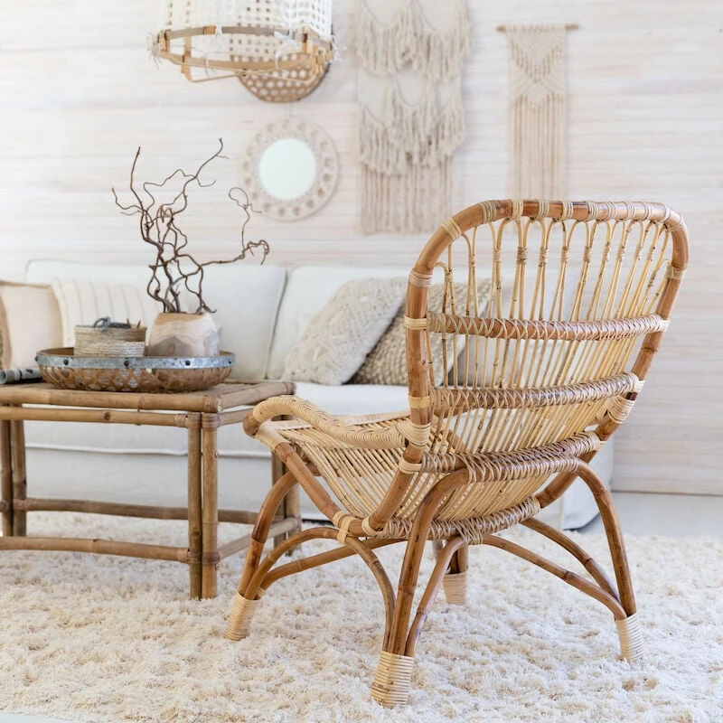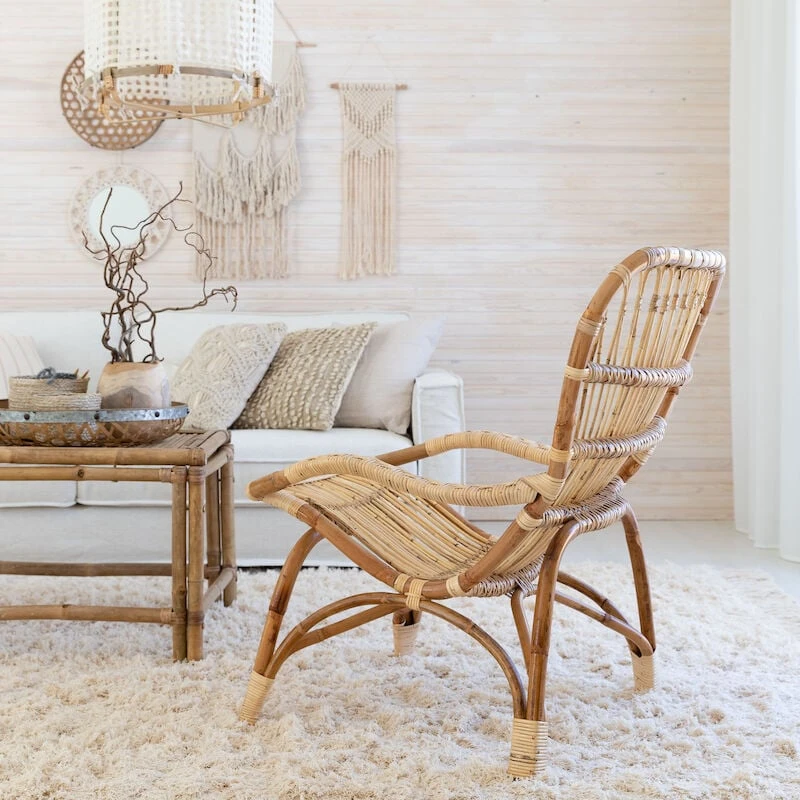 Kaunis rottinkinojatuoli on valmistettu aidosta luonnonvärisestä rottingista. Rottinki on ekologinen luonnonmateriaali ja sen ominaisuuksiin kuuluu värivaihtelut ja tummemmat kohdat. Värivaihtelut, epätasaisuudet ja käsityön jälki tekevät jokaisesta rottinkituotteesta yksilöllisen. Rottinki patinoituu ajan saatossa. Rottinkinojatuoli on ajaton ja se sopii sisäkäyttöön, sekä katettuun ulkotilaan. Tuoli on tyylikkäästi muotoiltu ja siinä on mukava istua. Pehmeyttä nojatuoliin saat lisäämällä istuimeen esimerkiksi lampaantaljan.
