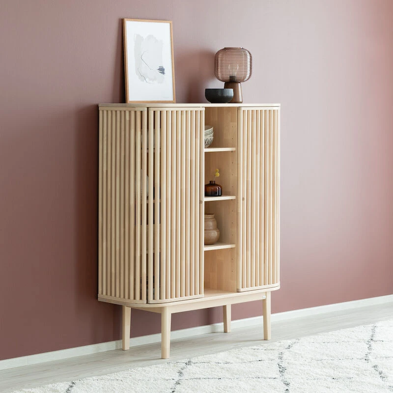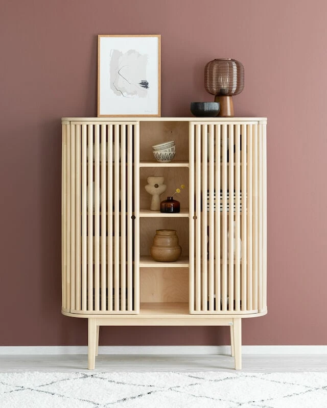 Rima tuotesarjan uusin tulokas on kaunis Rima kaappi, jossa on runsaasti hyllytilaa säilyttää esimerkiksi astioita ja maljakoita tai muita kodin pienesineitä. Lisäämällä hyllyille koreja, toimii kaappi myös kauniina eteistilan säilytysratkaisuna esimerkiksi asusteille.