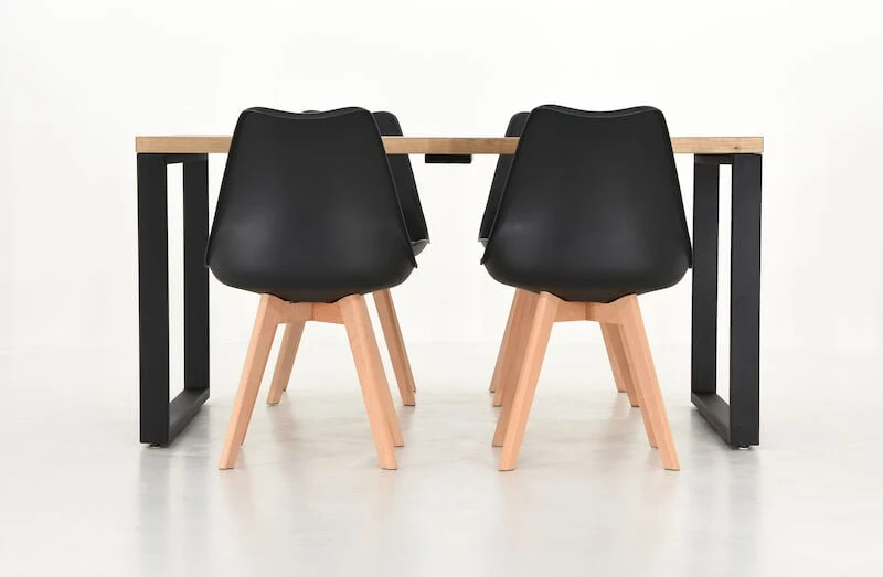Rustiikkiseen pöytään on yhdistetty modernit Salla kuppituolit. Kuppiosa on kestävää muovia ja istuinosa on verhoiltu keinonahalla. Tuolin sirot viistomaiset jalat ovat pyökkiä. Tuolin valmistusmaa Kiina.