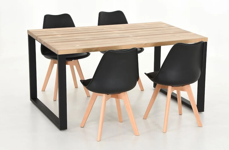Tukava ja rustiikkinen lankkupöytä on valmistettu kolmesta tuhdista mäntylankusta. Pöydässä on kaunis musta pulverimaalattu jalka. Pöydän kannessä näkyvät kauniisti puun syyt ja kuviointi, pöydän pinta ei ole tasainen.