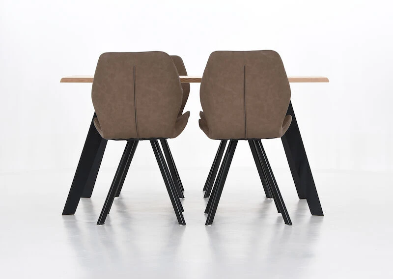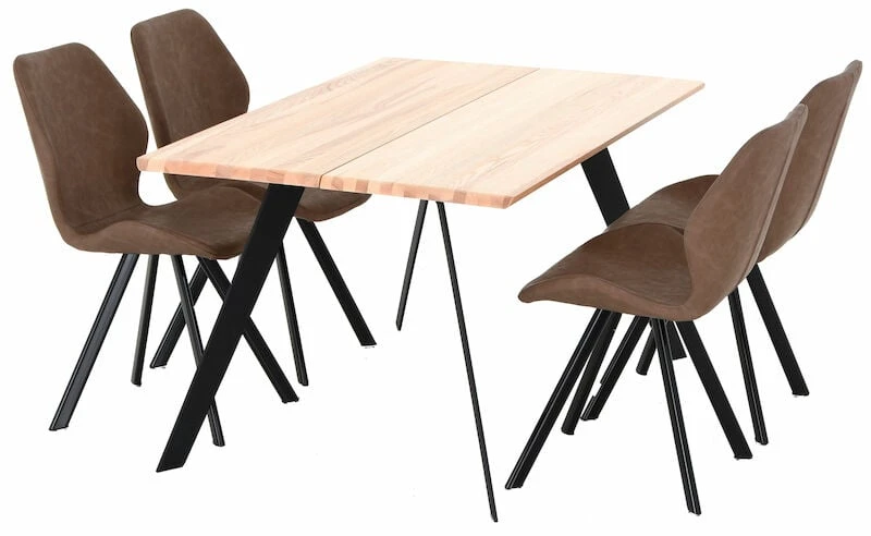 Saarni-Punnus 4-hengen ruokailuryhmässä yhdistyy tyylikkäästi ruokapöydän siro olemus Punnus tuolien maskuliinisempaan ilmeeseen.