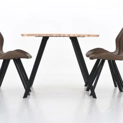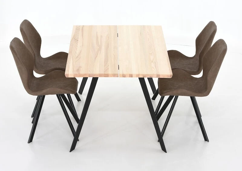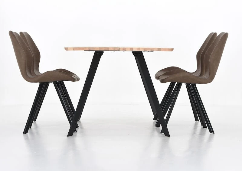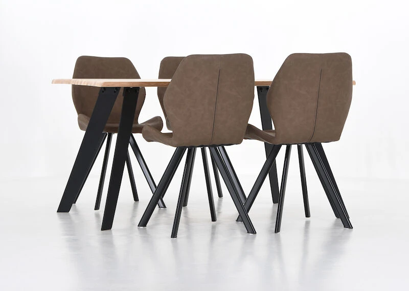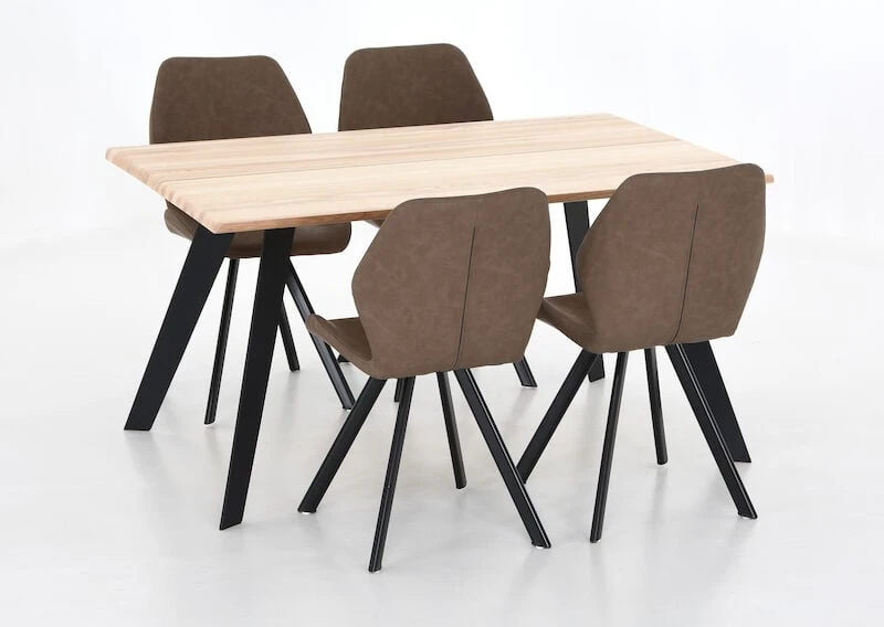 Pöydän kaunis kansi on saarnia, jonka pinta on lakattu. Jalat ovat tukevaa mustaksi maalattua terästä. Punnus tuoli on tyyliltään maskuliininen, muttei kuitenkaan liian kookas. Tuolissa yhdistyy kaksi materiaalia. Tuolin jalat ovat metallia ja näin ollen yhtenäiset pöydän jalkojen kanssa niin materiaaliltaan kuin muotokieleltään. Istuinosa on kestävää PU-nahkaa. Tuolin paino 5 kg. Valmistusmaa Kiina.