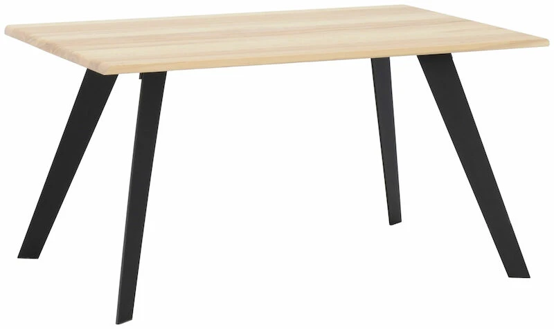 Moderni ja linjakas Saarni ruokapöytä. Pöydän kansi on aitoa, lakattua saarnia. Puun ominaisuuksiin kuuluu luonnolliset halkeamat ja oksakohdat. Jalat ovat tukevaa terästä, jotka on maalattu mustaksi. Vinot jalat tuovat pöytään linjakkuutta.