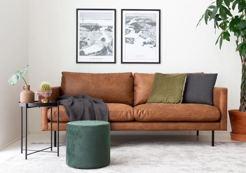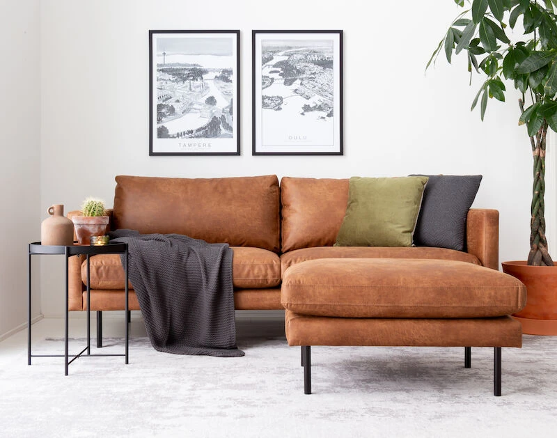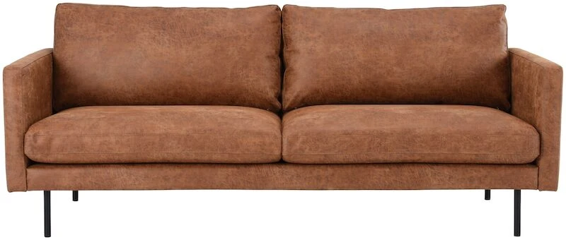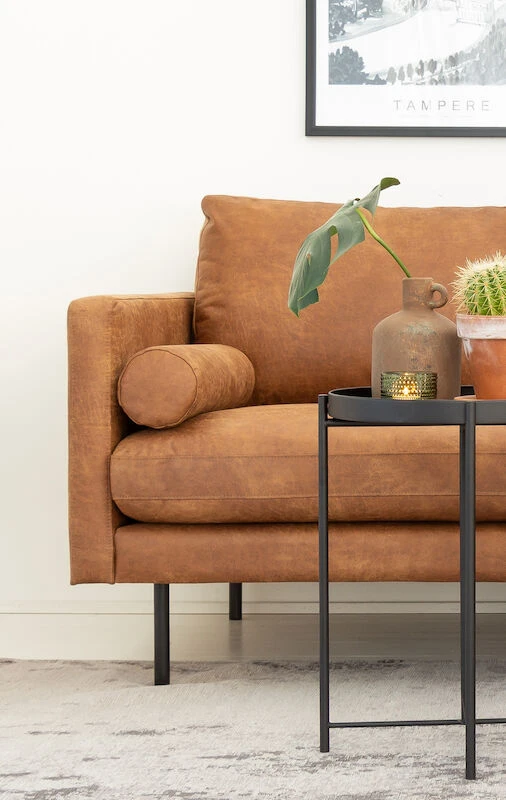 Linjakas, upean ulkonäön omaava aito ja alkuperäinen Scandic Copenhagen 3-istuttava sohva on siro, joten se sopii pienempiinkin tiloihin. Sohva on verhoiltu aidon nahan näköisellä ja tuntoisella bonded nahalla. Nahan pinta on eläväistä ja tummuusaste vaihtelee luonnonvalon määrän mukaan. Auringonvalossa mustan sohvan verhoilu taittaa hieman ruskeaan. Mustan sohvan lähikuvasta näet verhoilun pinnan tarkemmin. Bonded nahka on erittäin hyvin kulutusta kestävää. Sohvan korkeat ja ohuet metallijalat tuovat ulkonäköön ilmavuutta.