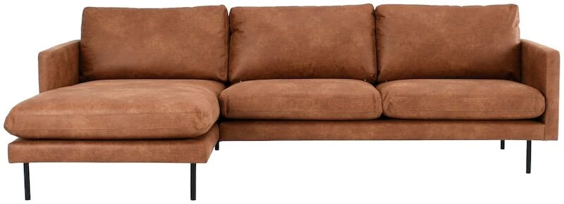 Tyylikäs ja laadukas Scandic Copenhagen divaanisohva. Kapeat käsinojat ja korkeat jalat tuovat sohvaan siron ja modernin ilmeen. Runko on valmistettu kantavilta osin kestävästä puusta ja vanerista. Verhoilu on kestävää bonded-nahkaa. Nahan pinta on eläväistä ja tummuusaste vaihtelee luonnonvalon määrän mukaan. Auringonvalossa mustan sohvan verhoilu taittaa hieman ruskeaan. Mustan sohvan lähikuvasta näet verhoilun pinnan tarkemmin.