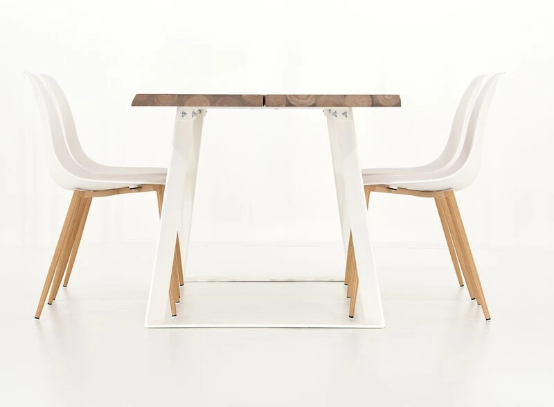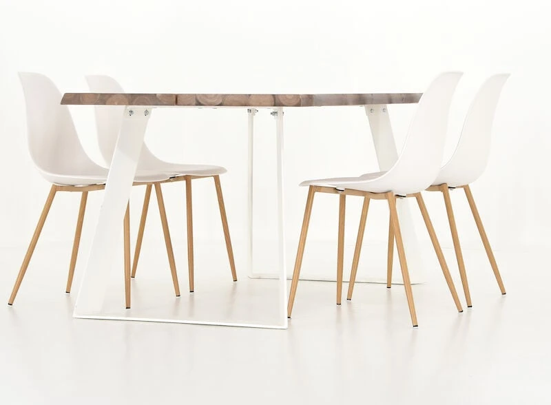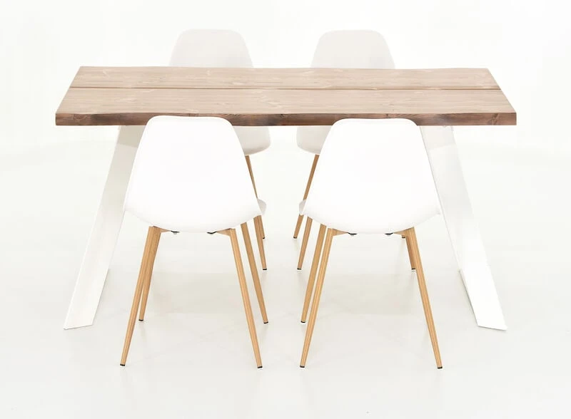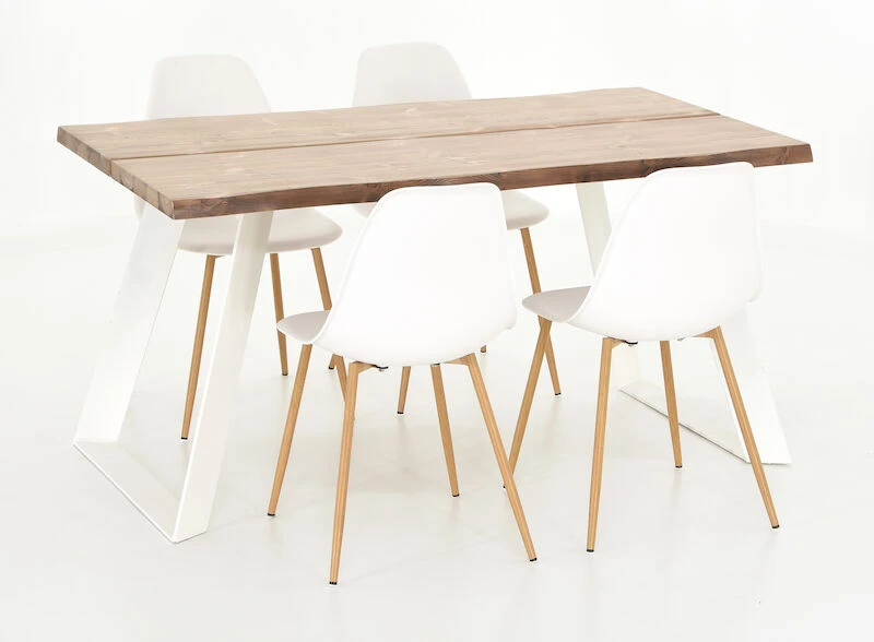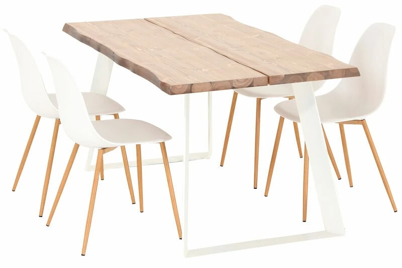 Tyylikäs 4-hengen ruokailuryhmä lankku pöydällä.