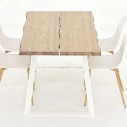Pöydän kansi on tehty kahdesta liimapuulankusta, jonka liimauksessa on käytetty vedenkestävää liimaa. Jalat ovat maalattua metallia. Kannessa näkyy kauniisti puun syyt ja kuviointi, joten pinta ei ole tasainen. Kaunis pinta valmistetaan erikoisharjaamalla, jonka tarkoituksena on korostaa puun luonnollisia ominaisuuksia.