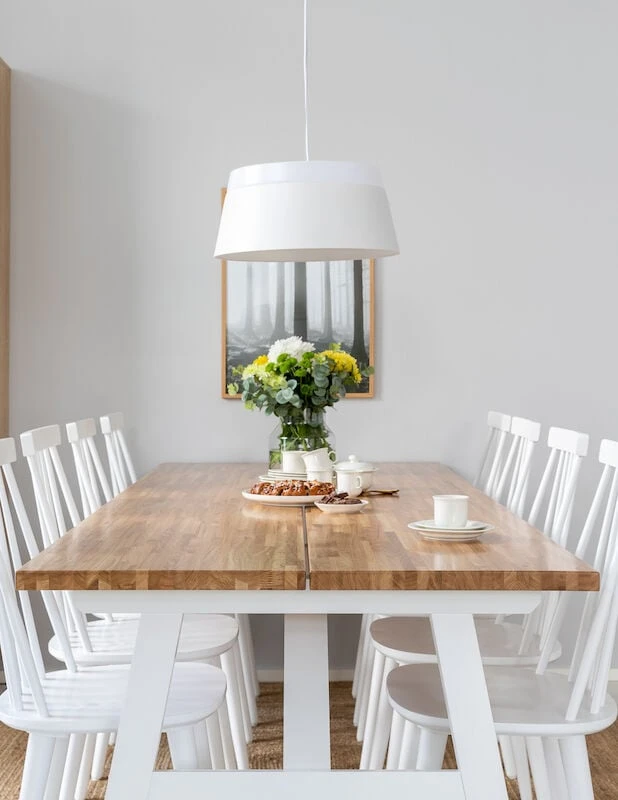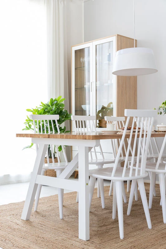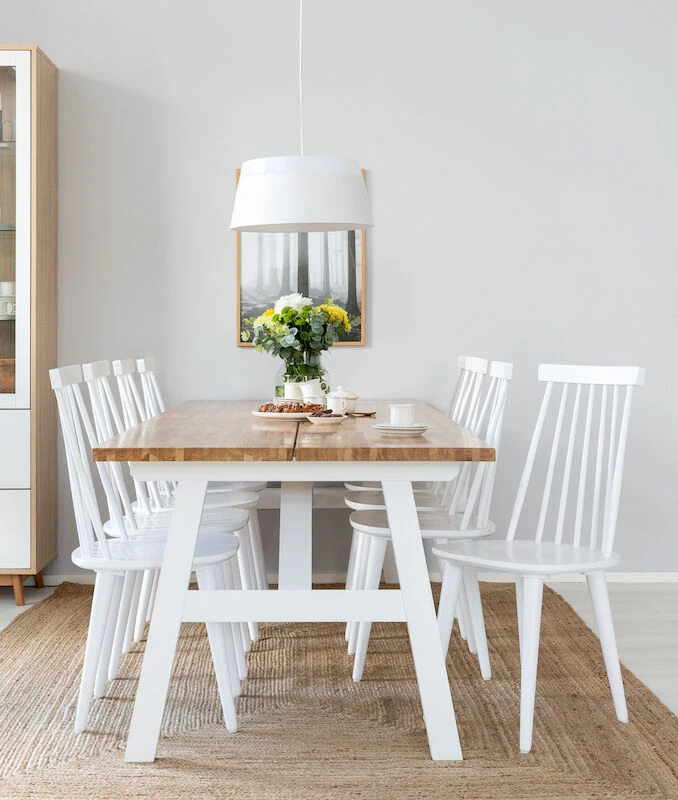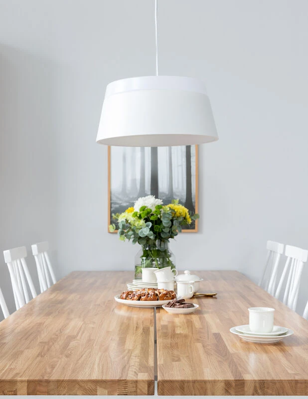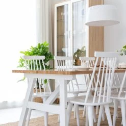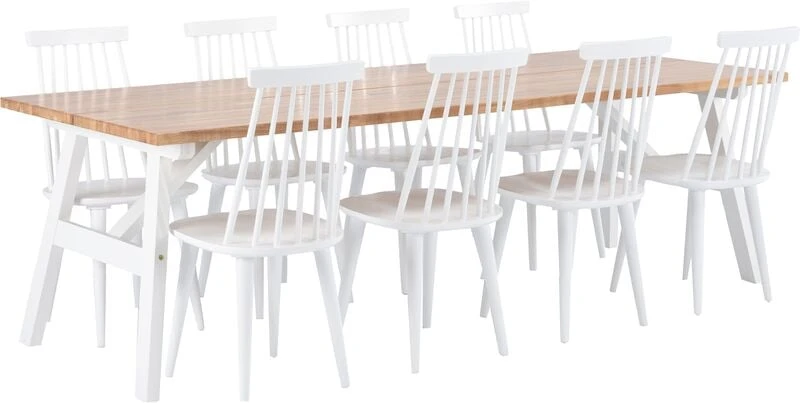 Skandinaavisen tyylikäs Tuohi-Lotta ruokailuryhmä koostuu tukevasta lankkupöydästä ja kahdeksasta miellyttävästä Lotta-tuolista. Pöydän massiivitammisen lakatun kannen vahvuus on 32 mm, runko maalattua koivua ja mdf-levyä. Klassinen Lotta-pinnatuoli on valmistettu kumipuusta, jonka pinta maalattu laadukkaasti. Jokainen tuolin selkänojan pinna on maalattu ennen kasaamista.