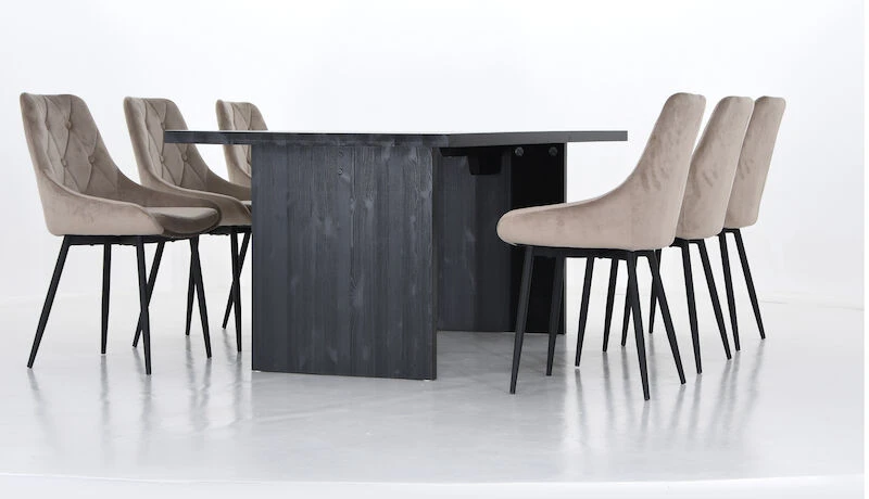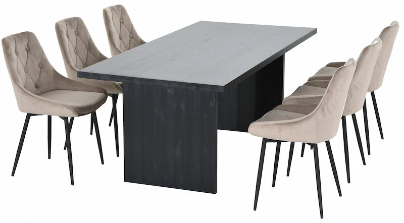 Tyvi-Alberton 6-hengen ruokailuryhmä on tyylikäs kokonaisuus. Massiivimännystä valmistettu Tyvi ruokapöytä on yksinkertainen muotoilultaan, joten se kestää ajattomana vuodesta toiseen. Pöytä on pintakäsitelty himmeällä sisäkäyttöön tarkoitetulla M1-luokitellulla petsilakalla. Tyvi on Veken omaa tuotantoa ja valmistetaan laadukkaasta pohjoissuomalaisesta, tiukkasyisestä männystä Lapissa.