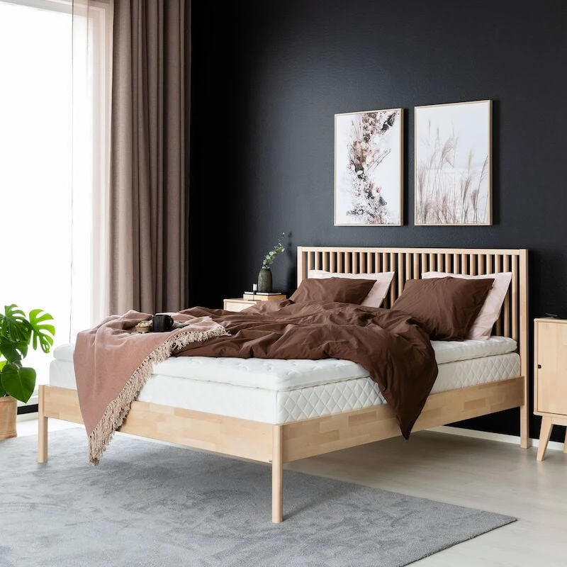 Tyylikkäitä ja siroja yksityiskohtia. Rima sänkypakettiin kuuluu laadukas Suomessa valmistettu koivusänky, jolla on avainlippumerkintä. Sängynrunko on valmistettu Kiteen huonekalutehtaalla massiivikoivusta. Runko on korkealaatuinen ja viimeistely on ensiluokkaista. Sängynrungossa on sälepohjat. Paketin kruunaa Unia 600 joustinpatjat L jäykkyydessä sekä 7 cm paksu Unia 600 profiloitu stylex petauspatja. Patjat on myös valmistettu Suomessa ja niilläkin on avainlippumerkintä.